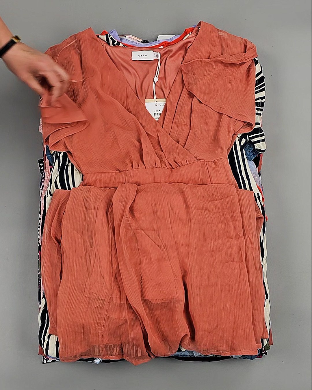 Среди нашего ассортимента всегда в наличии Сток в количестве более 450 тонн. Каждую неделю новые привозы из Европы, в том числе источником оптовых поставок бренда VILA является ДАНИЯ.